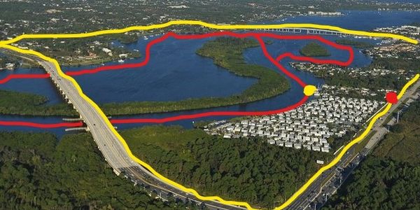 Yellow Trail- Biking from 2Waterview. From red dot to Kanner Hwy-to Veterans Bridge-to Map Road-to Palm City Bridge- to Kanner Hwy.